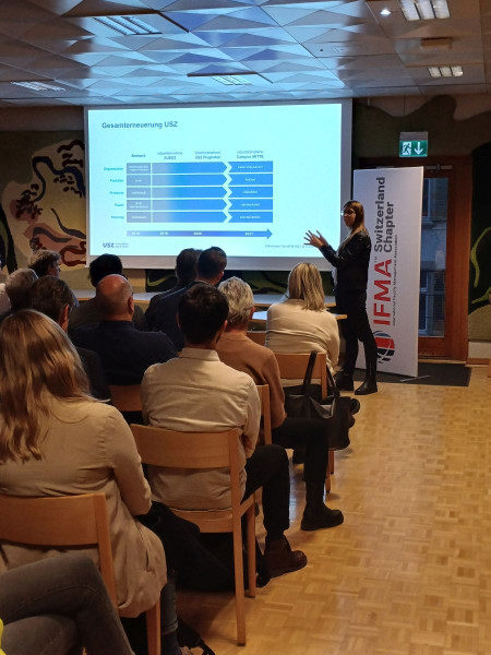 Da momentan beim USZ schwer gebaut wird, war der Schwerpunkt die Umsetzung der Strategie in FM Konzepten, die Bedeutung einer klaren Kommunikation im Bauprozess, der Umgang mit der Transformation und die Anwendung der BIM-Methode. Darüber hinaus beleuchtete das pbFM Team Aspekte wie Pflichtenhefte, Betriebs- und Nutzungskonzept oder ihre integralen FM-Prozesse, welche auf Pilotprojekten und festgelegten Baurichtlinen sowie Standards basieren. Ein gemütlicher Apéro für weitere Fragen und Networking rundeten diesen gelungenen Anlass ab.